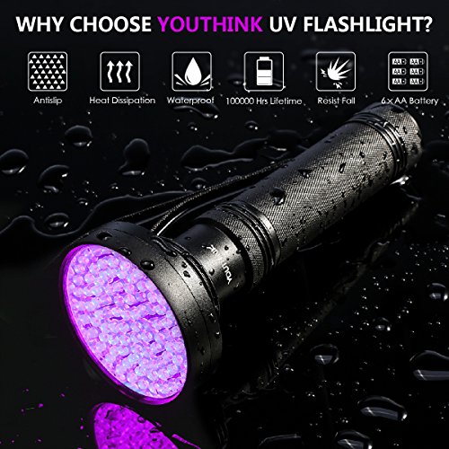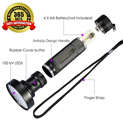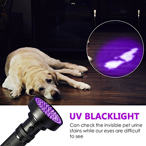 UV Flashlight Pet Stain Urine Detector Bright 100 LEDs Blacklight Torch with UV Sunglasses for Dog Cat Urine /Scorpions /Baby Clothes /Kitchens /Bathroom /Authenticate Currency /Dangerous Leaks