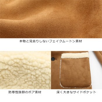 -. Feature : [素材](表面)ポリエステル97% ポリウレタン3%(ボア)ポリエステル100% / 【SIZE:S】着丈80 身幅49 肩幅43 袖丈59 / 【SIZE:M】着丈82 身幅51 肩幅44 袖丈60 / 【SIZE:L】着丈84 身幅53 肩幅45 袖丈62