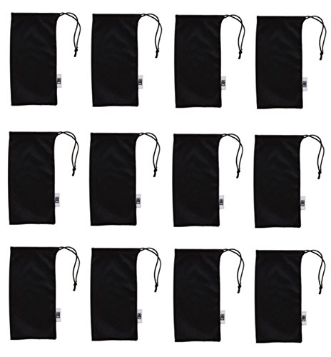(TronStore)/Vision Care/Eyeglasses Care/DIRECT FROM USA/DE 12-Pack Black Premium Soft Microfiber Cleaning And Storage Pouch / Sack / Bag For Sunglasses...