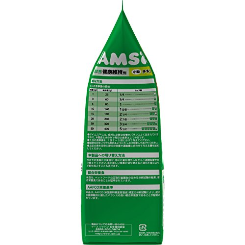 原材料:肉類(チキンミール、家禽ミール)、とうもろこし、小麦、動物性油脂、乾燥ビートパルプ、家禽エキス、乾燥卵、STPP (トリポリリン酸塩)、ひまわり油、フラクトオリゴ糖、ビタミン類(A、B1、B2、B6、B12、D3、E、コリン、ナイアシン、パントテン酸、ビオチン、葉酸)、ミネラル類(亜鉛、カリウム、クロライド、セレン、銅、ナトリウム、マンガン、ヨウ素)、酸化防止剤(BHA、BHT、クエン酸)