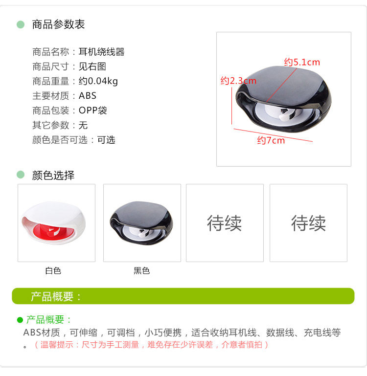 可调节耳机线收线器卷线器绕线器 创意耳机数据线自动收纳理线器