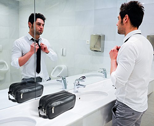 ★ SOLID, DURABLE, STURDY: Your new 10.5"x5"x5" men toiletries bag is made of Durable PVC Smooth material and remains amazing condition for extended use. Making it a perfectly reliable travel kit and shaving bag for men