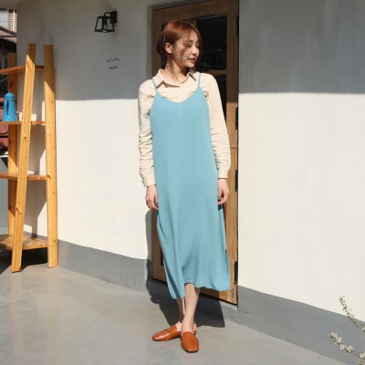 환한 컬러감이 눈길을 사로잡는 뷔스티에 원피스입니다. 흔하지 않은 컬러감과 찰랑찰랑한 링클 소재감이 매력적인 아이템인데요. 무릎을 덮는 롱한 기장감이지만 양옆에 트임이 있어 활동성을 높여주었구요. 부드러운 링클 소재감으로 활동 시 찰랑거리면서 부드럽게 다리에 감기는 느낌이 좋더라구요. 티셔츠나 셔츠, 블라우스 등 여러 아이템과 매치하기 좋은 아이템이라 추천드려요.
