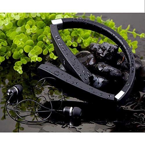 Bluetooth Sports Headset, Fashion Wireless Handsfree Sports Bluetooth Headset, Premium Bluetooth Stereo Headset with Retractable Wire with Retractable Wire Management, Neckband Style, Black