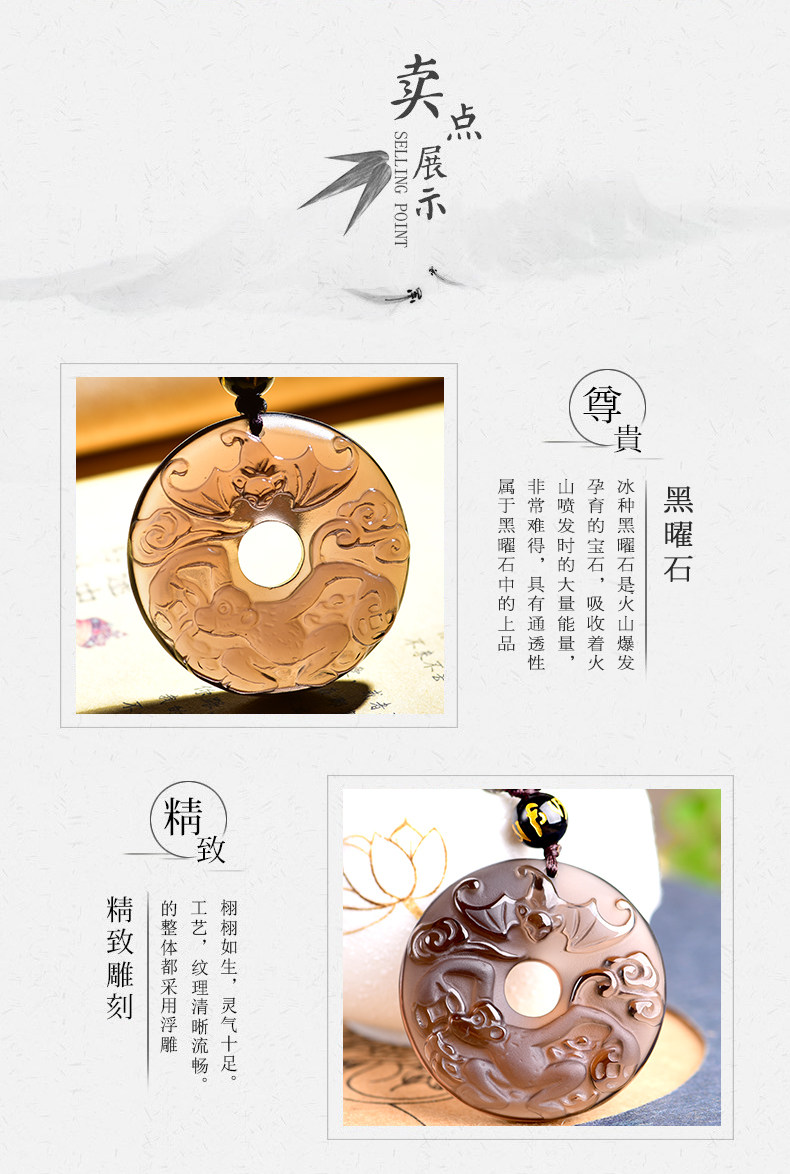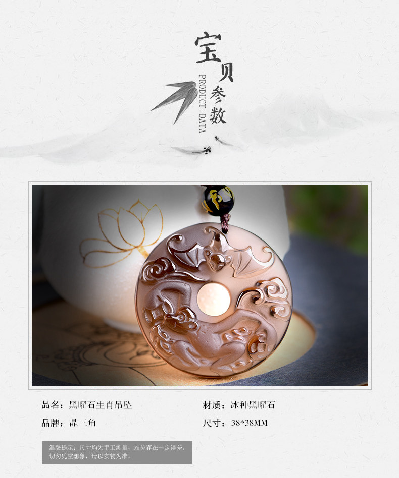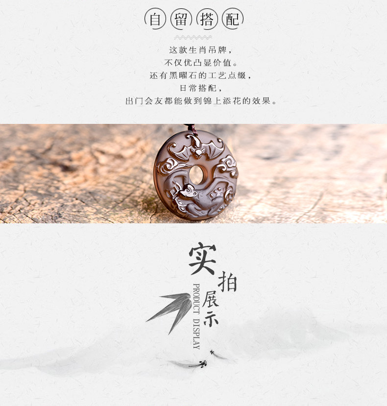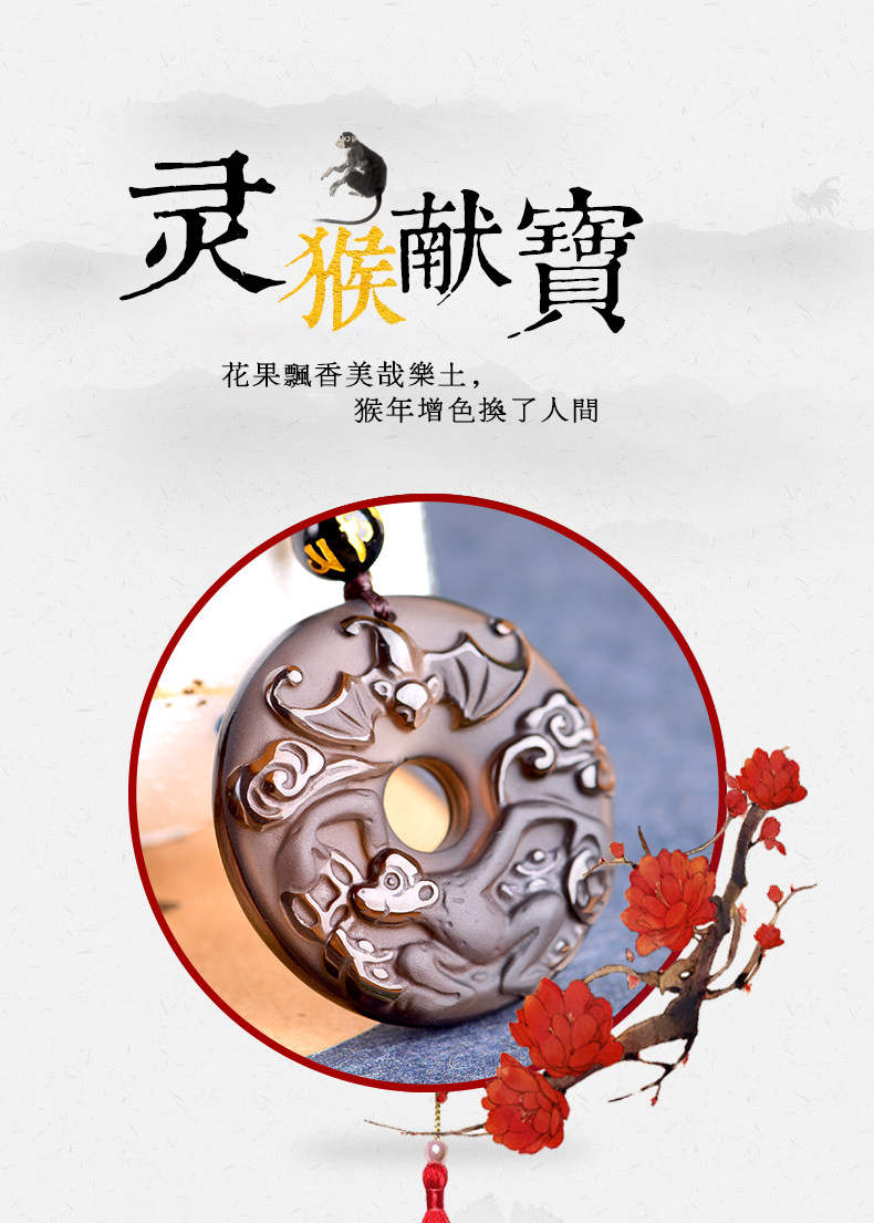 开光天然冰种黑曜石吊坠 十二生肖属猴男女款平安扣项链水晶饰品