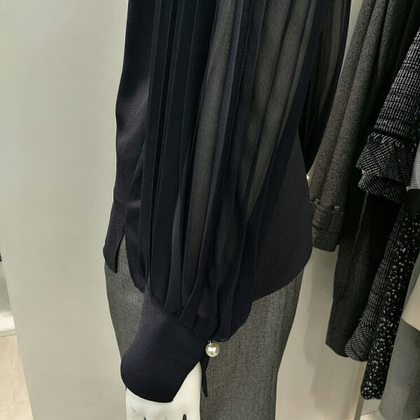 자켓이나 트렌치코트안에 코디해서 입기 좋음ㆍ겉옷을 벗어도 긴소매에 시스루라 고급지고세련되고 여성스럽다.