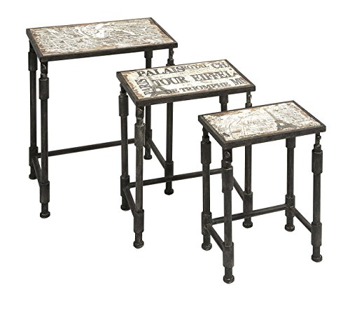 -. Brand : Imax -. Feature : Tall table dimensions: 18W x 12D x 23.5H in. / Medium table dimensions: 15.5W x 10D x 20.25H in. / Small table dimensions: 12.5W x 8.25D x 18.25H in. / Crafted of iron and fir / Metal tabletop -. Label : IMAX Corporation -. Manufacturer : IMAX Corporation -. MPN : 97249-3 -. PackageQuantity : 1 -. PartNumber : 97249-3 -. ProductGroup : Furniture -. ProductTypeName : HOME_FURNITURE_AND_DECOR -. Publisher : IMAX Corporation -. Studio : IMAX Corporation -. Title : Imax Knoxlin Nesting Tables - Set of 3