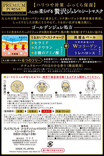 -. Feature : New product!! / Golden jelly prescription of jelly mask. / The blending two types of collagen (moisturizing),The serum plenty 33g for adults. / Faint scent of natural herbs. / Six free prescription,Synthetic fragrances / artificial coloring / mineral oil / alcohol / animal-derived raw materials / ultraviolet absorber additive-free
