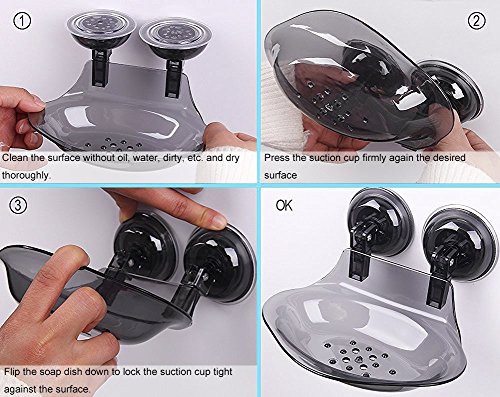 - Rotatable Suction Cups: With 2 strong absorbability rotatable suction cups, you can rest assured it is safe to store the soap, and it can be re-positioned and removed many times, never leave any marks or sticky residue