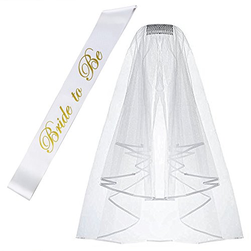 - ✓ ACCESSORIES INCLUDED- This kit comes with 1 Veil ( 29” double cascade, 2” clip), 1 Sash (Size: 156 cm x 9.5 cm), 1 Comb ( 2” Length).