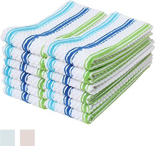 - Set includes: 12 blue and green striped kitchen towels