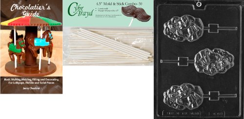 Cybrtrayd 45St50Bk-C413 'Angel Lolly' Christmas Chocolate Candy Mold with 50 4.5-Inch Lollipop Sticks and Chocolatier's Guide