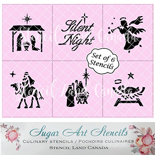 Studio : Stencil Land Publisher : Stencil Land Binding : Office Product Product Description Christmas cookie stencils (YES they can be used for other craft projects with paint like flat ornaments, coasters , mugs, greeting cards...) 1 set of 6 different designs. Size of the designs are 3 inches (at the longest side H or W ) Perfect for cookies from 3.25' to 3.5'. ***The overall stencils are 4.3' H X 3.8' W. THEY CAN'T FIT to the stencil genie ! (Stencil Genie require 5.5' X 5.5' overall stencil OR a stencil adapter. Stencils are made from food grade 5mil Mylar plastic , reusable ,easy to wash. They are thin and flexible enough to work on rounded surfaces. *** THEY ARE NOT ADHESIVE !. -CARE: Just rinse with warm soapy water and lay flat to dry. *** do not put this stencil in the dishwasher ! Again , They are basically made as culinary use but are perfect for lots of craft projects , You can use them with paint on wood, fabric, canvas... ALL OUR DESIGNS can be resized ! Contact us about the possibilities prior to purchase. 0