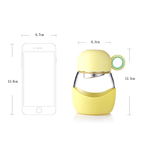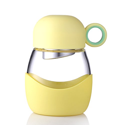 "Rainbow"Lead-proof Glass Bottle for Kids& Adults Heat-resistant Glass Water Bottle,11oz Coffee Mug for One Cup of Coffee with Big Belly and Its Sleeve, 320ML (Yellow)