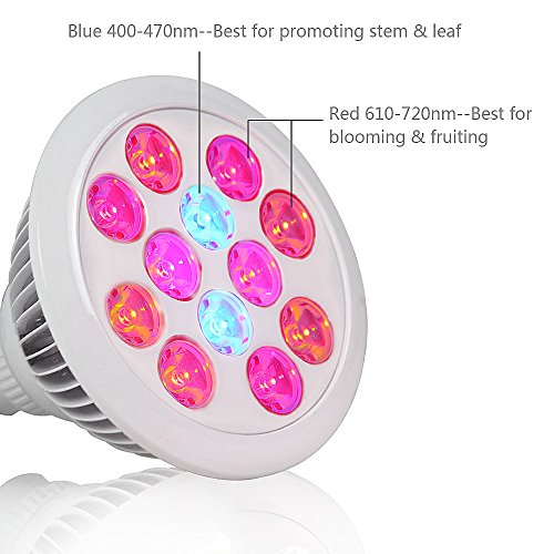 - Feature : ★ 24W Led Plant Grow Light Professional Lighting. The Led grow light provides you a targeted spectrum,different wavelengths of light are required by plants for photosynthesis. Red light from 620~630nm or 660~670nm and blue light of 460~470nm provide optimal conditions. Grow lights can accelerate plant growth in this particular ratios. / ★ Update of the 12W(12led*1W), High brightness. The more brightness, the better photosynthesis performance. Adopting high power LED chip, there are 12LEDs at 2W, totally 24watt rated power versus the other sellers' version 12 LEDs at 1w. Same small size and shape, but triple brighter than 12w. / ★ Effective Heat Dissipation. The body of the grow light features an innovative fins design that allows heat to dissipate.Heat is spread over a larger area, allowing for a cooling effect while the lamp is working. It also extends the natural lifespan of the lamp as less strain is caused by heat. / ★ Exceptional Light Distribution - The lens has been manufactured from high-quality PMMA material and the light is distributed through a 45°angle. This allows a much higher level of light to be distributed. / ★ Easy to Use. Be installed with standard E26 socket, it is easy to set up and use. There is no need for a special lamp, a simple desk lamp will be perfect.