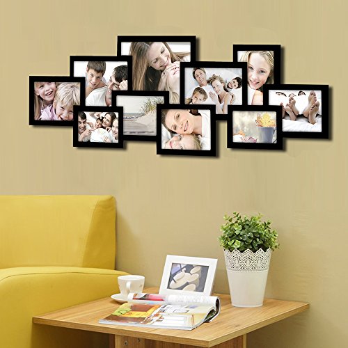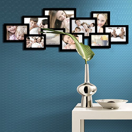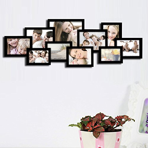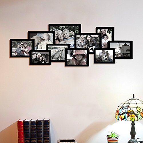 Studio : Adeco Publisher : Adeco Binding : Kitchen Product Description You have so many fond memories; shouldn't your walls showcase as many as possible? This frame lets you share ten of your best-loved moments in a dynamic arrangement of slim black, portrait and landscape frames. The layout is already arranged, so you can spend the time picking your favorite photographs (five 5x7", two 6x8", two 4x6" and one 8x10"). How you fill the space is up to you! Black and white wedding memories, or bursts of color from summer fun; the possibilities are endless, and your new, unique decor is sure to impress. Multiple hooks allow for horizontal or vertical hanging to best suit the decor needs of your living room or bedroom. This frame is also a wonderful choice for a birthday, wedding or anniversary gift. 0