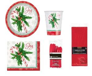 Christmas Candy Cane Party Packages For 8 Guests - Includes Dinner Plates,Napkins,Cups,Cutlery & Table Cover - 51 CT