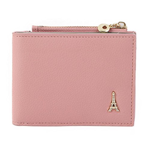 -. Feature : Small Size Half Wallet, Variety of Slots / Card Slot 8, Paper Money Slot 1, Coin Slot 1 / Folding Size : 3.9 x 3.12 x 0.78 Inch, Weight : 59 g / Material : Cowhide / The Eiffel Tower Cubic, Pink Color Travel Wallet