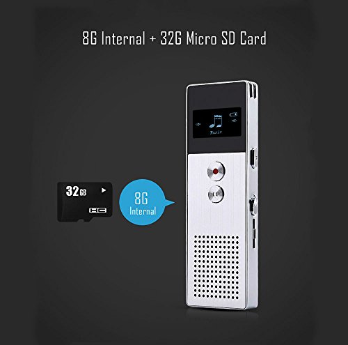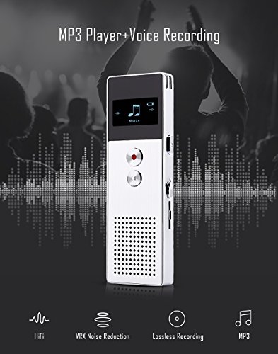 Digital Voice Recorder MP3 Player, Double Microphone with Built-in Speakers, Multifunctional, USB, Rechargeable, Voice Activated, 8GB Mini Simple Sound Audio Dictaphone for Meetings Lectures - Silver