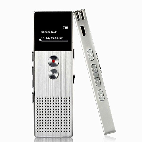 - Built-in powerful stereo speaker, Dynamic noise reduction design with OLED display screen, Voice activated recording; Multi language support; Built in rechargeable battery, can charge via usb cable;