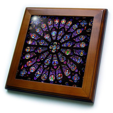 3D Rose South Rose Window of Notre Dame Cathedral in Paris Framed Tile, 8" x 8"