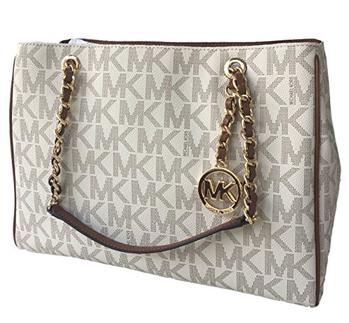 -. Brand : Michael Kors -. Color : Vanilla Luggage -. Department : womens -. EAN : 0190049908259 -. Feature : Michael Kors Susannah Signature Large Tote Bag / Double top handles MK fob / Magnetic closure lined Zip compartment, interior zip pocket, four interior slip pockets / 14"L x 5"W x 10"H; 9" handle drop -. ProductGroup : Shoes -. ProductTypeName : HANDBAG -. Title : Michael Kors Susannah Signature Large Tote Bag -. UPC : 190049908259
