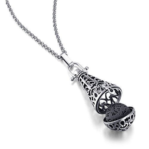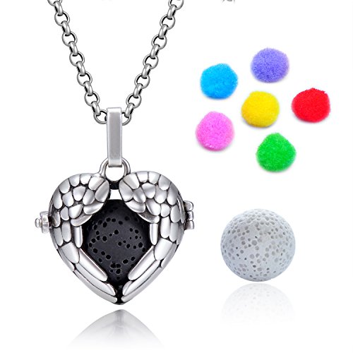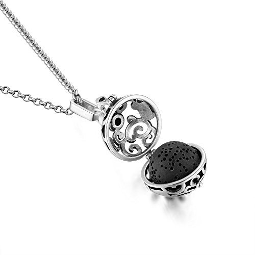 -. Feature : Elegant design cage locket necklace with aromatherapy function ( Essential Oil not included ).It would be very popular as a present for your lovers, friends, and family / 【Lava Stone (16mm):】 This reusable, highly absorbent round lava stone provides the best way to diffuser essential oils on the go, porous, easy to diffuse. Allowing the essential oil to really seep in and letting the aroma linger longer time. / They are great for use with aromatherapy blends, and also with regular perfume. These lockets come with fragrance refill balls of various colors, so you can change the look of the locket easily by changing to a different color pad. The stone and refill balls are washable and can be reused many times, (Stone In boiling water to soak for 30 minutes). so there is no limit to the looks that you can achieve. / 【You Will Get:】 1 Locket Pendant + 1 white lava stone + 1 black lava stone + 1 30 inch stainless steel necklace + 6 different color diffusing refill balls / 【Advantage:】 Upercharge your brain cells - Fill a pick-me-up when feeling down or sluggish Relaxation and Sleep - helps you reduces anxiety and emotional stress.