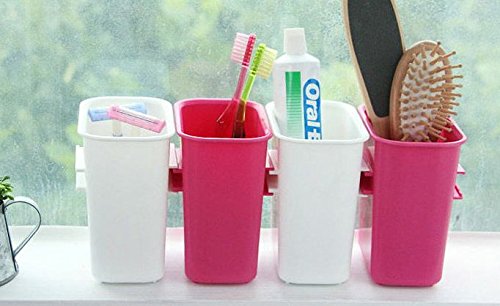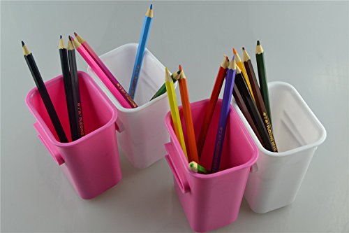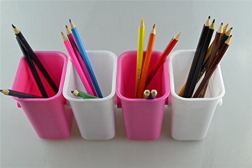 Chris-Wang 4Pcs Creative/Joinable/Composable Office Desktop Pencil Holder Pen Organizer, Table-top Chopsticks/Spoon/Knife/Fork Caddy, Dresser Makeup Brush/Cosmetics Sorter Slots(White&Hot Pink)