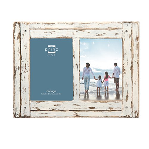 -. Title : Prinz 2 Opening Homestead Antique Wood Collage Frame, 5 x 7", White
