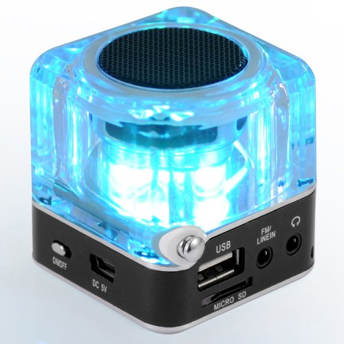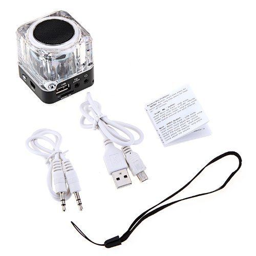 Features: Hi-Fi & clear loud sound output. LCD digital screen shows time and electricity. Elegant and stylish in appearance, compact and portable. With light weight, perfect for both home use and travel use. With unique transparent acrylic design and colorful lighting function, making it more fascinating! Specifications: Power supply: Rechargeable 550mA lithium battery / DC 5V Dimension: Approx. 5.3 * 5 * 5cm / 2.09 * 1.97 * 1.97in Item weight: 119g / 4.2oz Package size: 7.8 * 5.4 * 5.2cm / 3.07 * 2.13 * 2.05in Package weight: 165g / 5.83oz Package includes: 1 * Mini Speaker 1 * 3.5mm Audio Cable 1 * USB Charging Cable 1 * Hang Rope 1 * User Manual