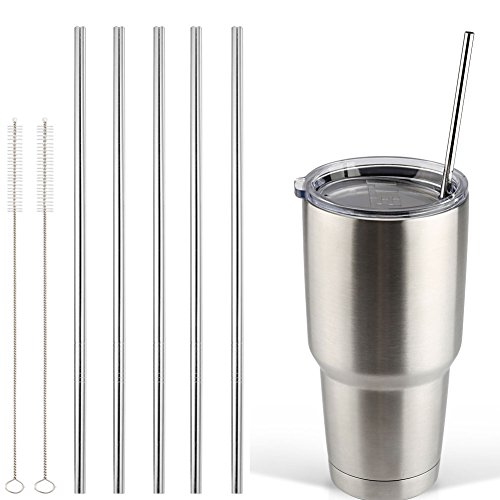 Accmor 18/8 Stainless Steel Straws, FDA-approved Durable Reusable Metal 10.5inch Extra Long Straight Drinking Straws Set of 5 – for 20 & 30OZ YETI RTIC OZARK Tumbler Cups - with 2 Cleaning Brushes