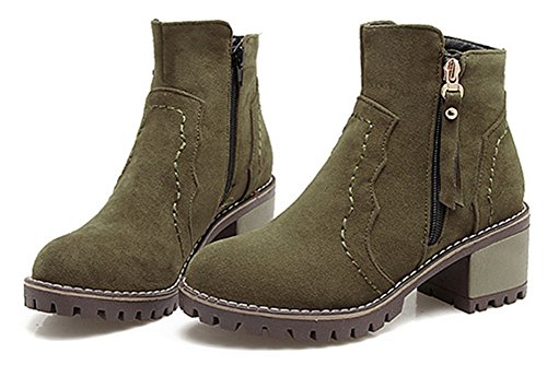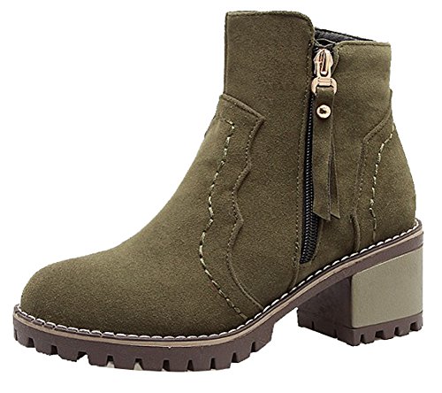 Binding : Apparel Product Description A pair of suitable high heel booties means a lot to a lady. It can not only prevent her feet from the harm from the whether, also, it can help she well display her vintage and feminine temperament. Ladies are always faced with a dilemma that they like high heel shoes because high heel shoes is elegant and can well show their feminine, however, high heel shoes are very likely to do harms to them. While, high heels would make them get tired easily and they would sprain their ankle carelessly. However, with this pair of booties you don't need to worry about that. Just as you can see, this pair of ankle booties has chunky heels and platform which make them wears very comfortable. And its lug sole can well antiskid, you don't need to worry when you step on the slippery or snowy street. Still hesitate? Its really a must-have item for you. 0