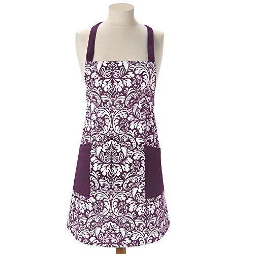 100% Cotton Machine Washable Kitchen Apron Cooking Apron Baking Apron with 2 Pockets (Plum)