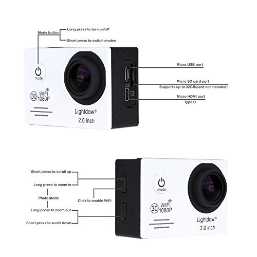 상품명: Lightdow LD6000 WiFi 1080P HD Sports Action Camera Bundle with DSP:Novatek NT96655 Chip, 2.0-Inch LT
