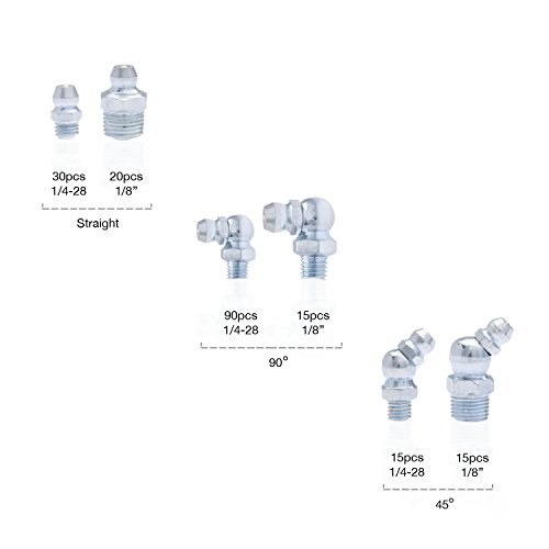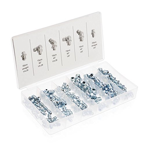 Neiko 50463A SAE Hydraulic Grease Fitting Kit, 110 Piece | Straight and Angled | 1/4", 1/8"