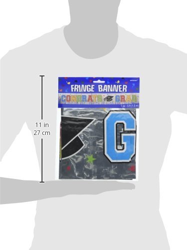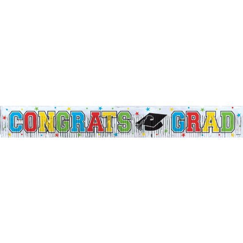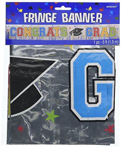 Studio : TradeMart Inc. Publisher : TradeMart Inc. Binding : Toy Product Description Decorate your graduation party with a banner that's as brilliant as the grad! Our Multicolor Graduation Fringe Banner is made of sparkling silver foil with a fringed bottom edge. Featuring a "Congrats Grad" message in bold, multicolor letters, this banner is also embellished with matching colored stars and black graduation caps. Mount it using tape or Sticky Tack (sold separately). This lightweight sign is a great way to display the graduate's school colors ? and their big accomplishment ? at their graduation party. 0