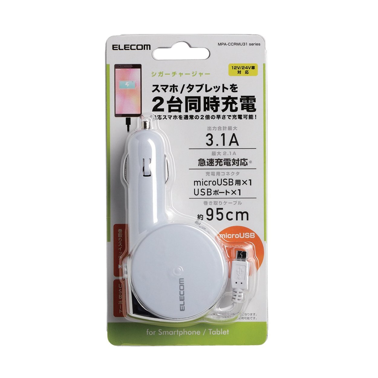 ELECOM iPhone6 iPhone6 Plus microUSB 2port total 3.1Aoutput 12V/24V OK
