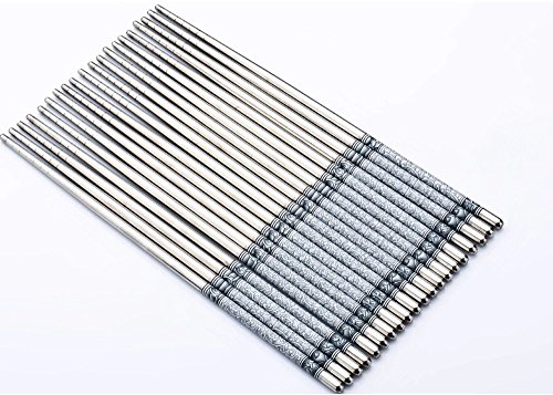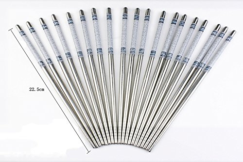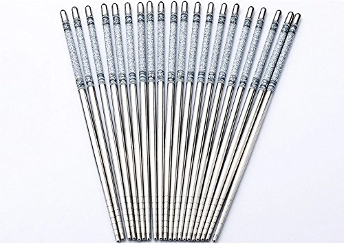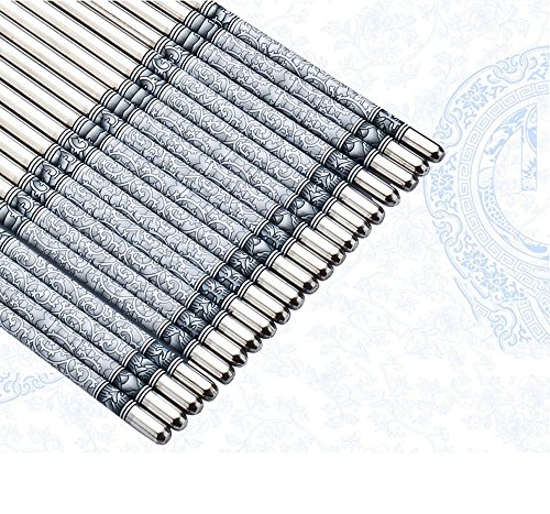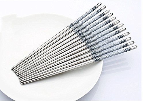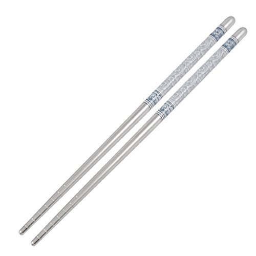 -. Title : Dealglad 8.8 Inch Stainless Steel Blue and White Porcelain Design Vacuum Non-slip Chopsticks Set