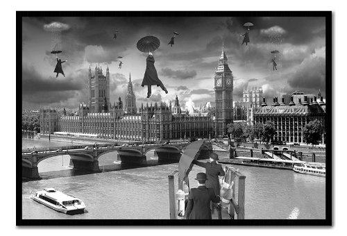 -. Title : Thomas Barbey Blown Away Over Westminster Poster Magnetic Notice Board Black Framed - 96.5 x 66 cms (Approx 38 x 26 inches)