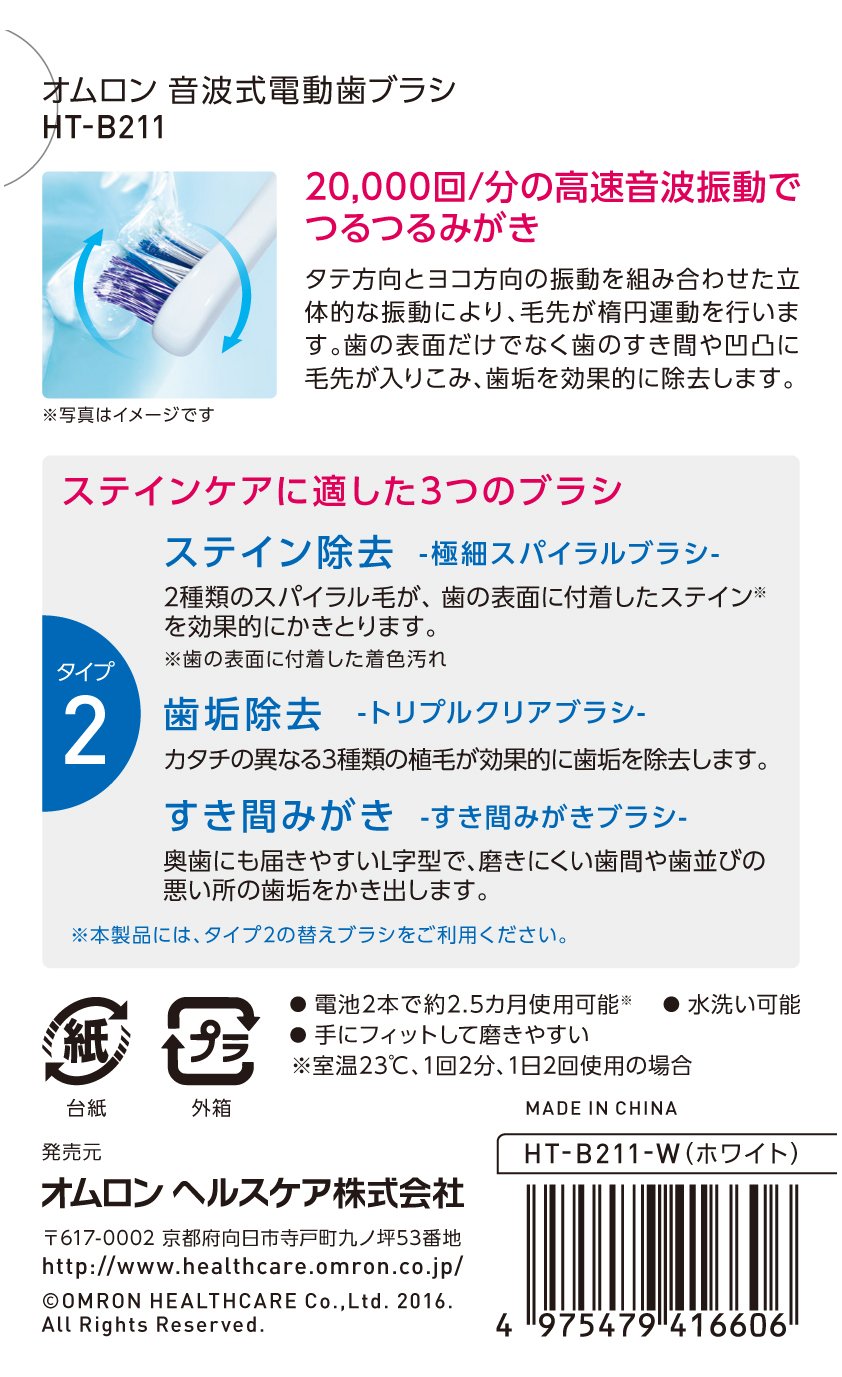 High speed sound wave vibration of about 20,000 times / min with two batteries