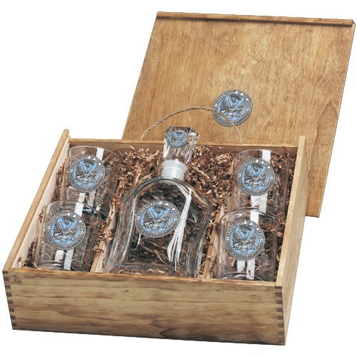 -. Feature : United States Army Capitol Decanter Box Set / contains one 24 ounce glass decanter and four (14 ounce) double old fashioned glasses / Made in the USA
