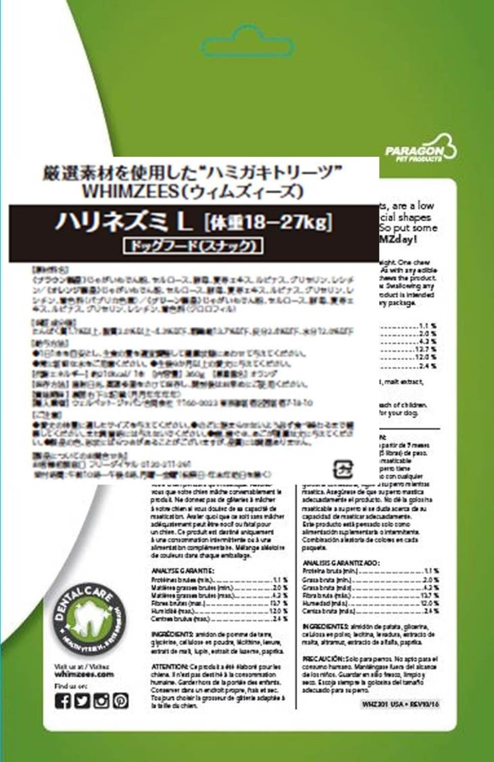ウィムズィーズは厳選自然素材を使用したデンタルトリーツです。独特の形状と噛み応えで、楽しく長く噛むことが出来ます。限定した自然由来の原材料を使用し、原材料の数も限定しています(主要原料6種類)。小麦やトウモロコシなどの穀物を一切使用していません(グレインフリー)。長く噛むことにより、歯垢や歯石の減少、口臭予防にも役立ちます。人工着色料、香料、合成保存料不使用。