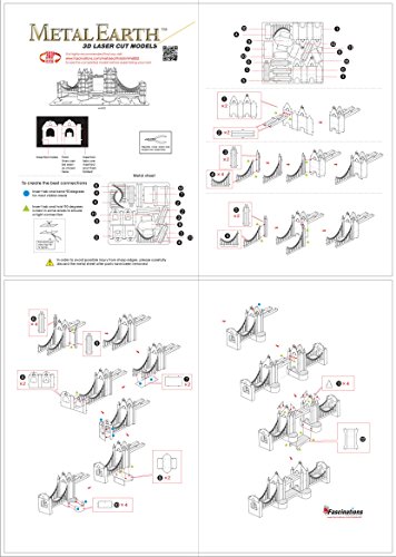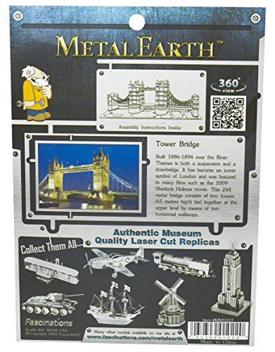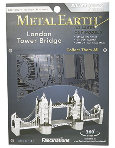 Studio : Fascinations Publisher : Fascinations Binding : Toy Product Description The London Tower Bridge was built in between 1886-1894 over the River Thames. It is both a suspension and a drawbridge. It has become an iconic symbol of London and was featured in many films such as the 2009 Sherlock Holmes movie. This 244 meter bridge consists of two towers (65 meters high) tied together at the upper level by means of two horizontal walkways. Now you can build your own Metal Marvel version of this famous bridge from this precision, laser cut, 3D model kit. 0