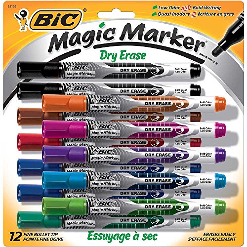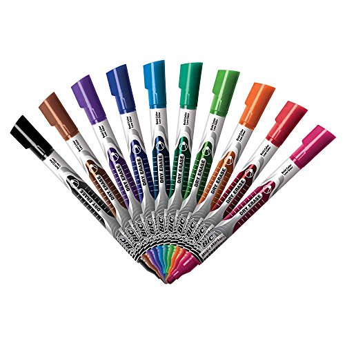 BIC Low Odor & Bold Writing Pen Style Dry Erase Marker, Bullet Tip, Assorted, 12 (GELIPP121AST)