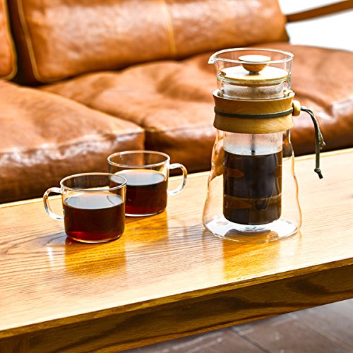 하리오HARIO 더블 글래스 커피《피레스》 커피 커피 메이커 프레스식 커피 상품 사양:W128×D128×H224mm,실용 용량400ml 3 배용내열 유리(본체 유리)고, 올리브 우드(뚜껑《즈마미구릿푸》뉴 유치)고, 스테인레스(샤프트 필터 세트)고, 가죽(끈)