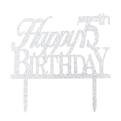 - The ”Happy 75th Birthday” topper will add the perfect amount of sparkle to your cake or baked goods.