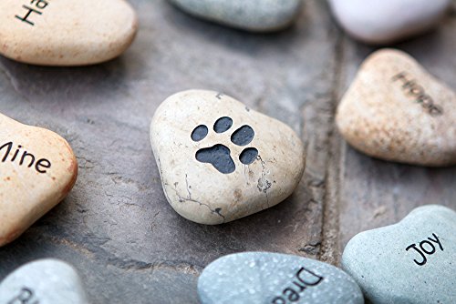 Paw Engraved Stone Heart Shaped Inspirational Sandblast Stone, Perfect Gorgeous Unique Gift Ideas, Natural Beach Pebble Rock