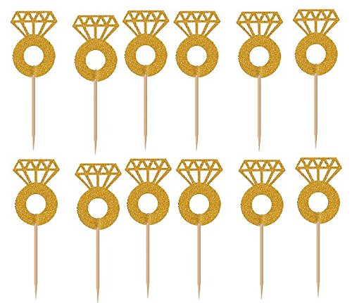 CakeSupplyShop Gold Glitter Diamond Shaped Wedding Ring Elegant Cupcake Decoration Pics 24 count