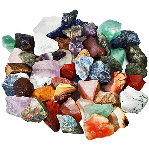 SUNYIK Natural Raw Stones Rough Rock Crystals for Tumbling,Cabbing,Assorted Stones,1pound(about 460 gram)