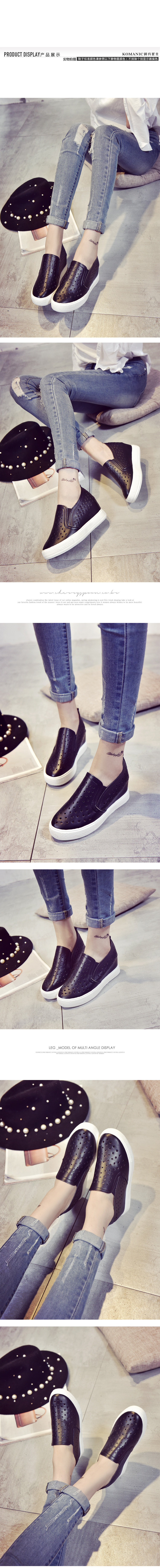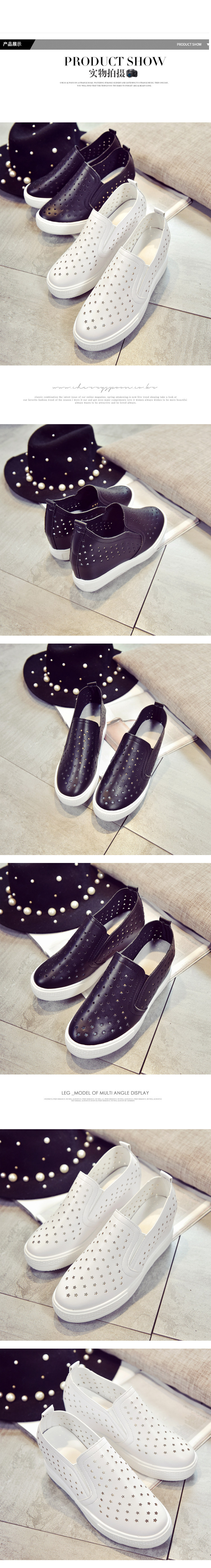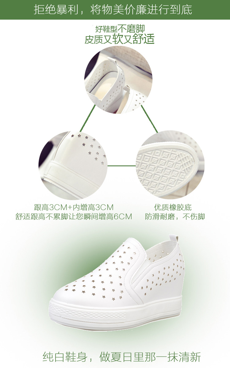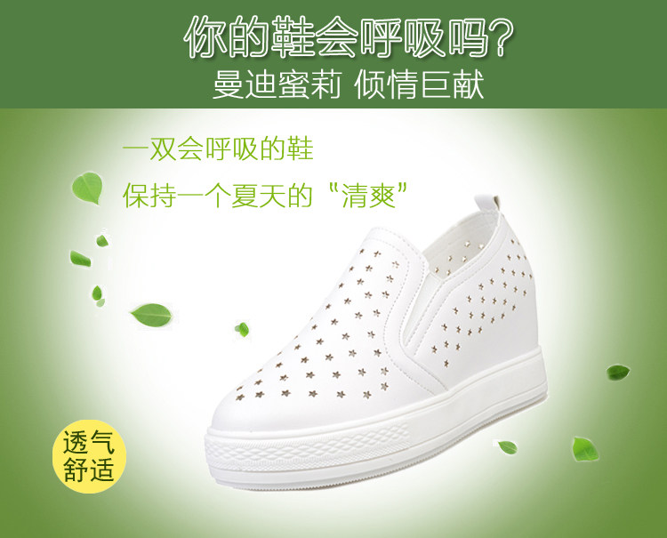 韩版小白鞋春夏内增高女乐福鞋懒人一脚蹬厚底镂空学生休闲鞋单鞋